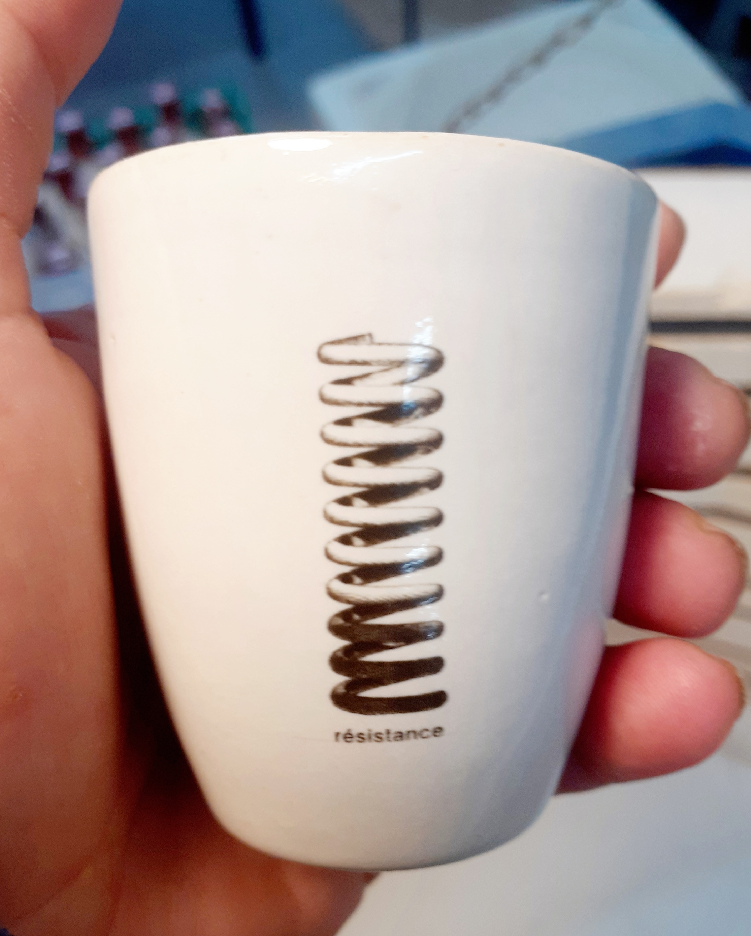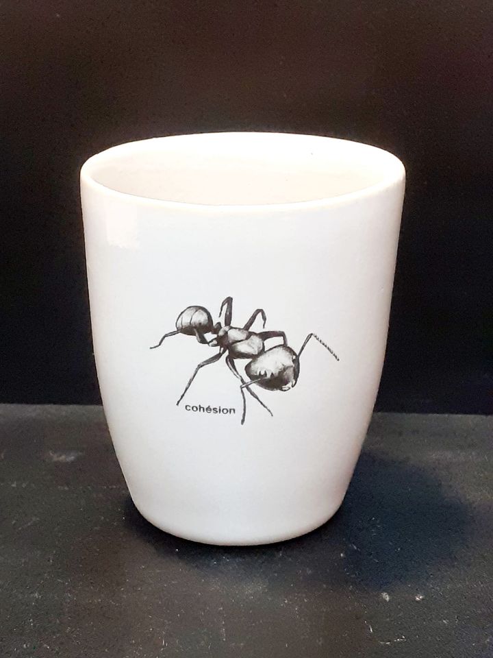 tasses espresso cups 🔴 grès fin – émail blanc brillant • décalcomanies à motifs b3cm x h6cm x Ø5cm • 1250°C © Atelier blvdr mandaté par rs solutions SA • SITE WEB EN RÉNOVATION • WEBSITE UNDER RENOVATION